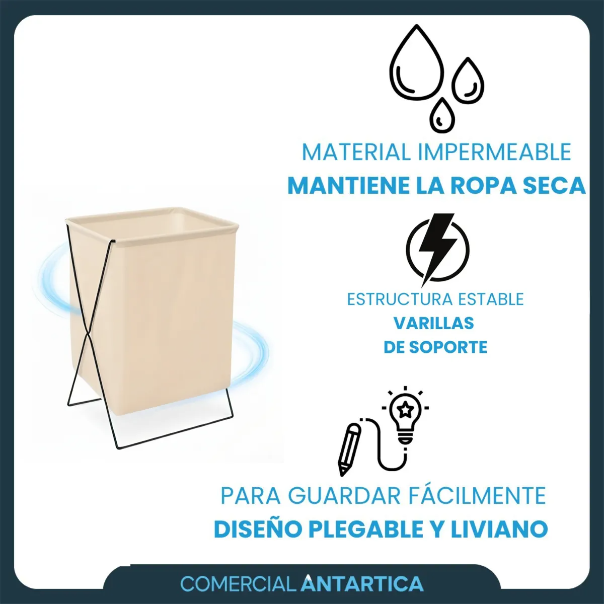 • 1 x Cesto plegable de tela y estructura metálica liviana