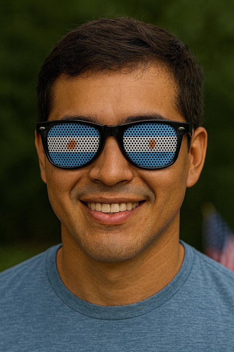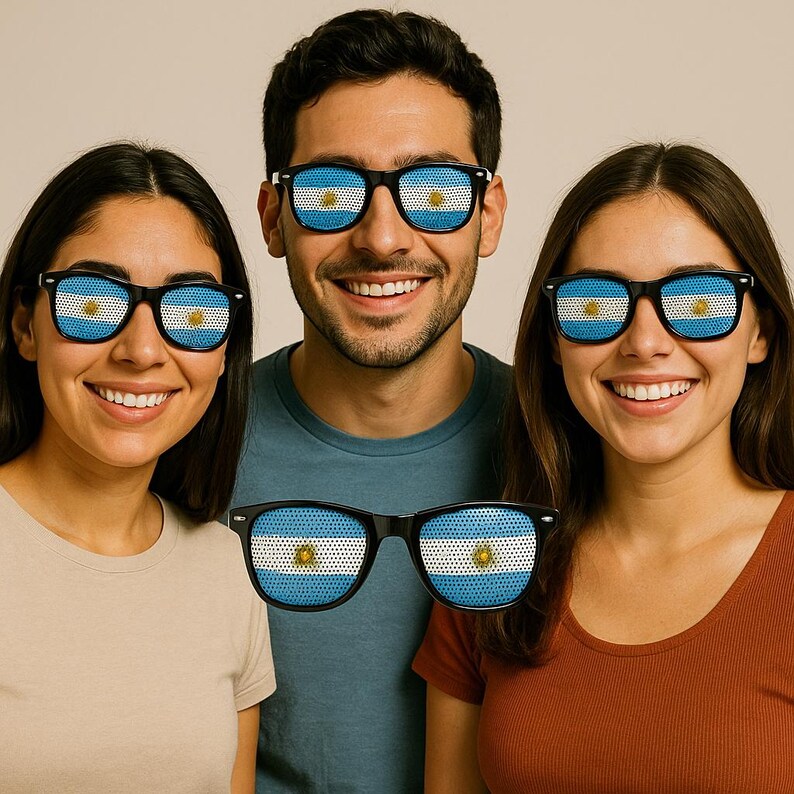 PATRÓN: El diseño único de lentes combina moda con visibilidad mientras muestra el patrón de la bandera argentina.