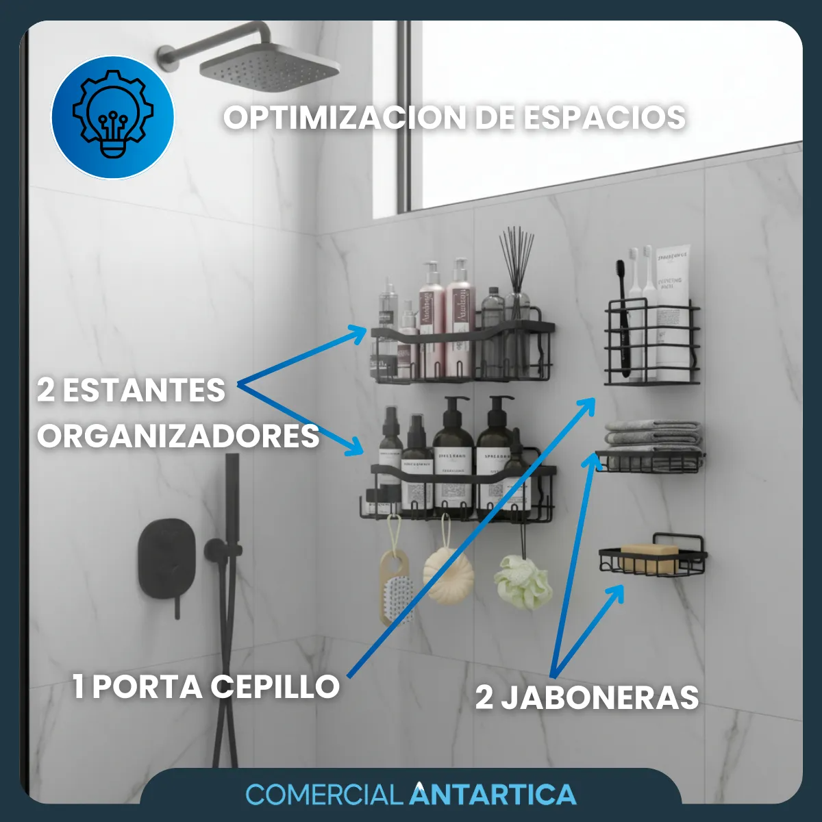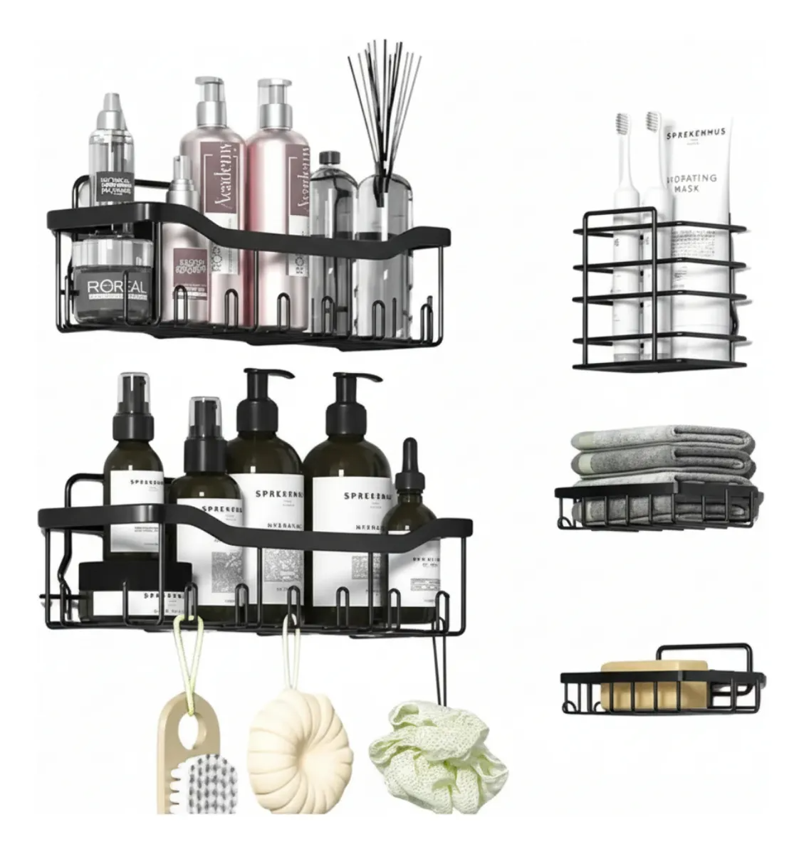 Este set de 5 organizadores de ducha es la solución perfecta para mantener el baño ordenado sin necesidad de perforar paredes. Fabricados en material resistente y con sistema de adhesivo fuerte, ofrecen un montaje rápido y seguro. Incluye estantes, jaboneras y porta cepillos para tener todos los artículos de higiene al alcance de la mano. Su diseño moderno en color negro aporta un toque elegante y funcional a cualquier baño o cocina.
